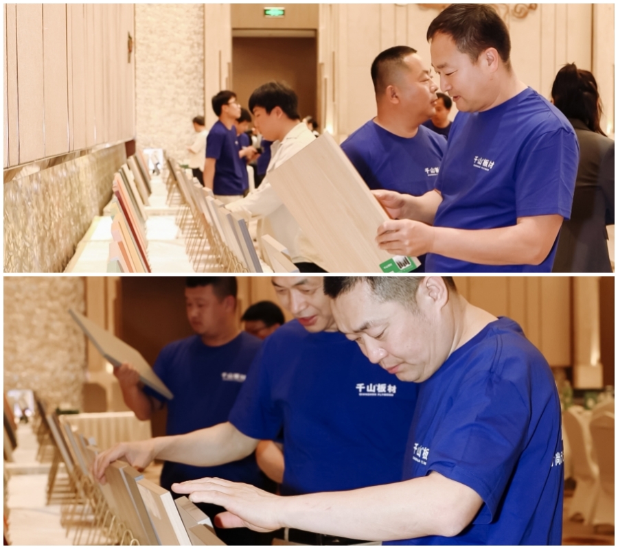 下午5點,合作伙伴們陸續到達活動現場,在千山板材風采展示墻簽到并合影留念。隨后,伙伴們來到千山板材樣品展示區,仔細參觀2024款系列產品。