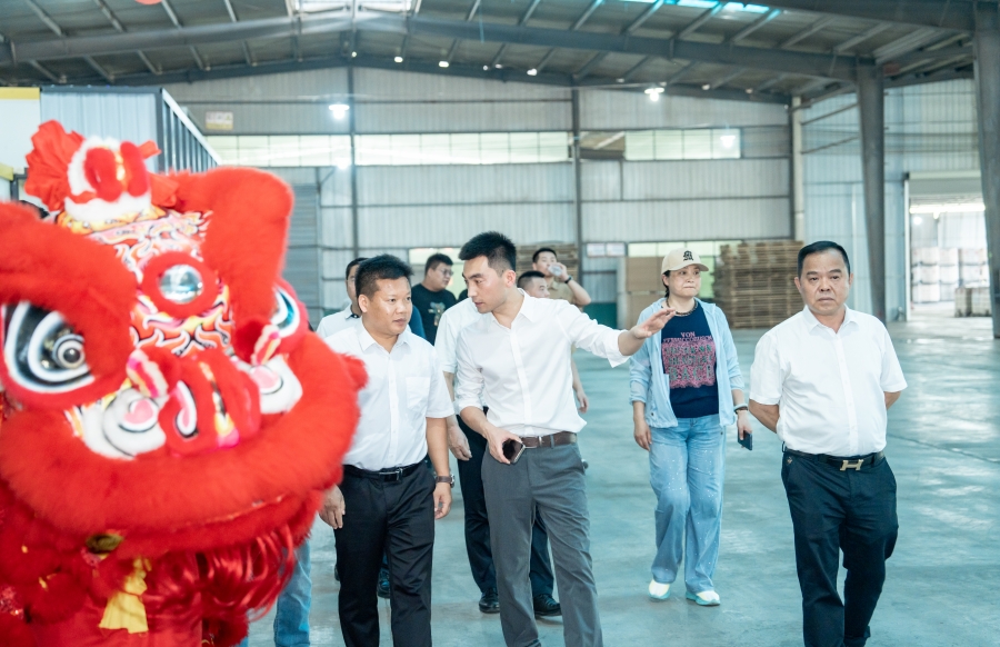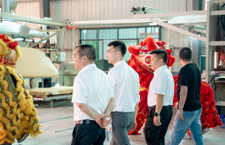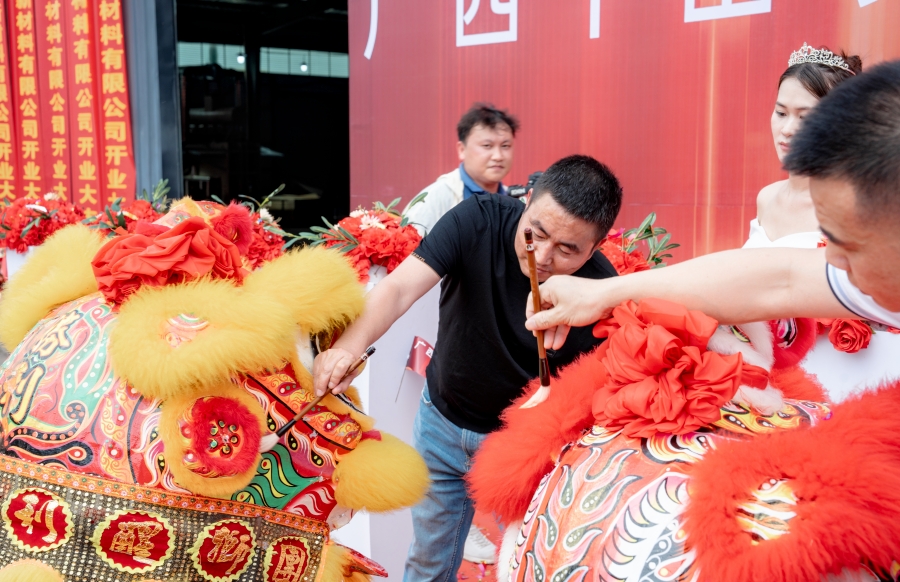 頓興明總經(jīng)理和于常成總經(jīng)理共同為開業(yè)醒獅點睛。禮花漫天,喜氣洋洋,醒獅歡騰,大吉大利!栩栩如生的雄獅,象征著廣西生產(chǎn)基地紅紅火火,前程似錦!