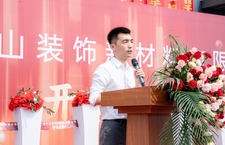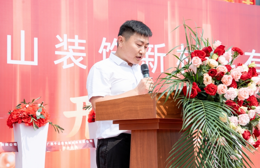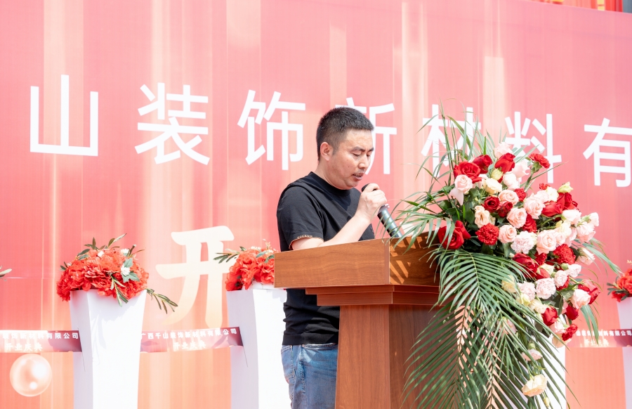 隨后,廣西千山裝飾新材料有限公司總經(jīng)理邵廣峰發(fā)表講話。邵總表示,廣西生產(chǎn)基地將秉承集團(tuán)的發(fā)展宗旨,在政府和協(xié)會的領(lǐng)導(dǎo)下,整合利用市場資源優(yōu)勢,加強(qiáng)管理、提升技術(shù),以高昂的熱情積極投身于各項生產(chǎn)經(jīng)營活動,助力集團(tuán)的高質(zhì)量發(fā)展,同時為推動行業(yè)的發(fā)展作出應(yīng)有的貢獻(xiàn)。