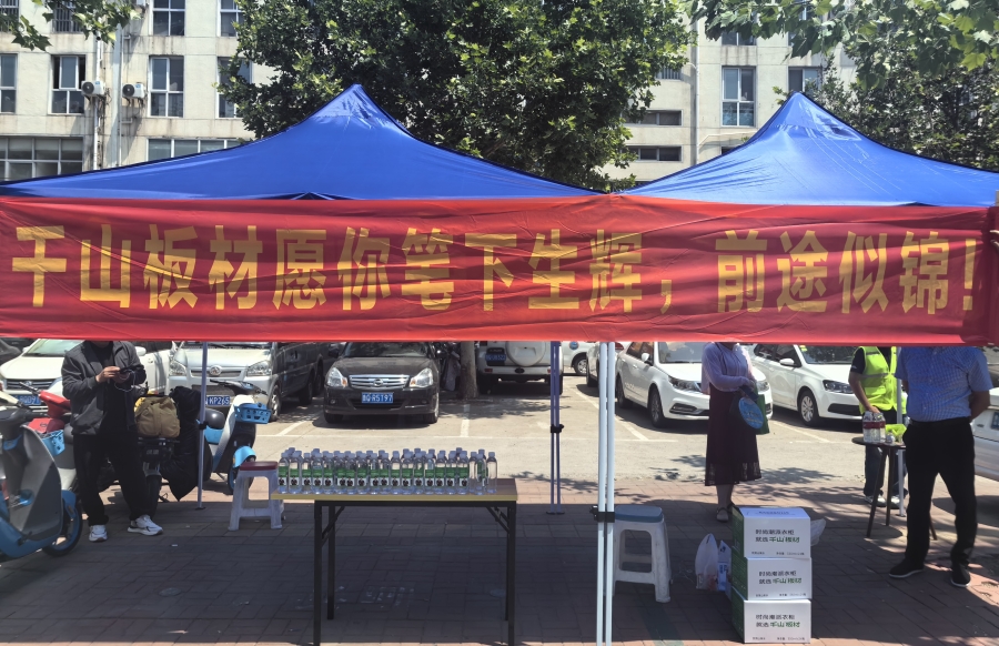 6月7日清晨,在臨沂一中、臨沂二中等高考考點(diǎn),除了考生及家長的身影,還能看到千山板材的小伙伴們,他們早早抵達(dá)考點(diǎn),準(zhǔn)備飲用水、支起避暑帳篷,為考生和家長們提供一個相對涼爽、舒適的休息場所。
