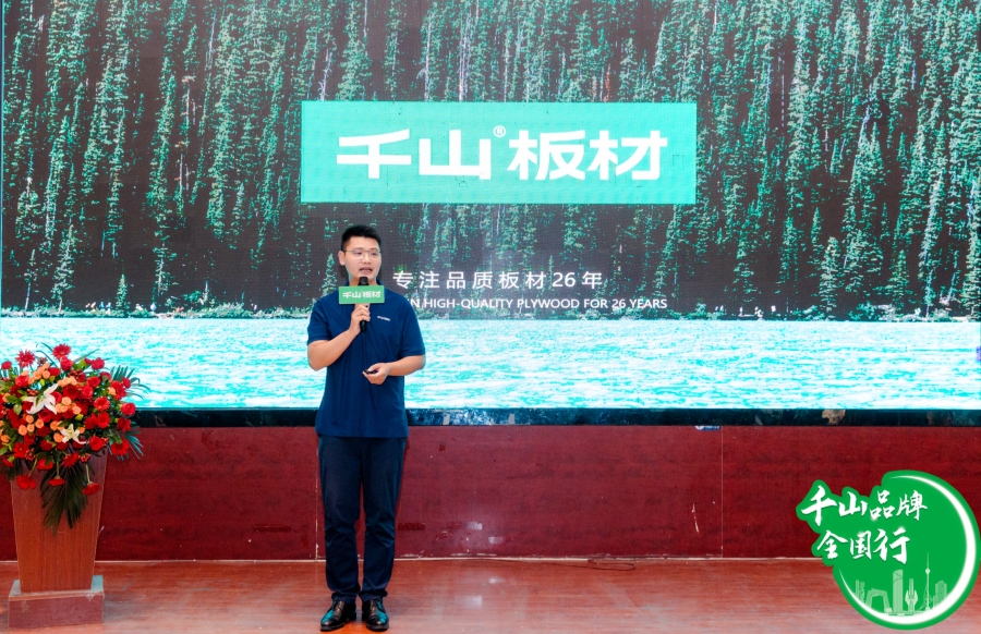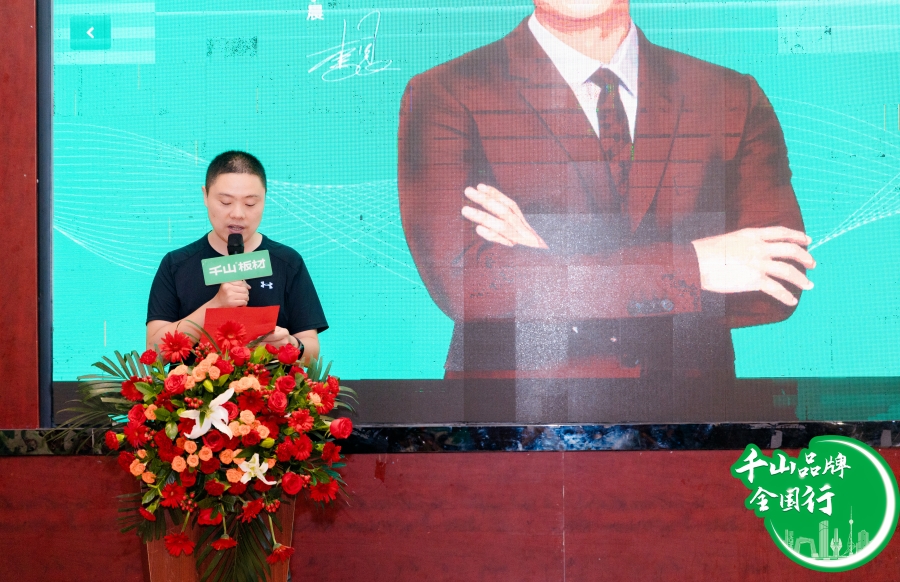 千山板材大區(qū)經(jīng)理王殿忠致辭。王經(jīng)理分享到,2024年,千山以強(qiáng)勁的市場(chǎng)響應(yīng)速度,打造形成更完整的產(chǎn)品體系,并以“現(xiàn)貨庫(kù)存 1張起發(fā)”的現(xiàn)貨倉(cāng)布局為經(jīng)銷商及合作伙伴注入新的發(fā)展動(dòng)能。