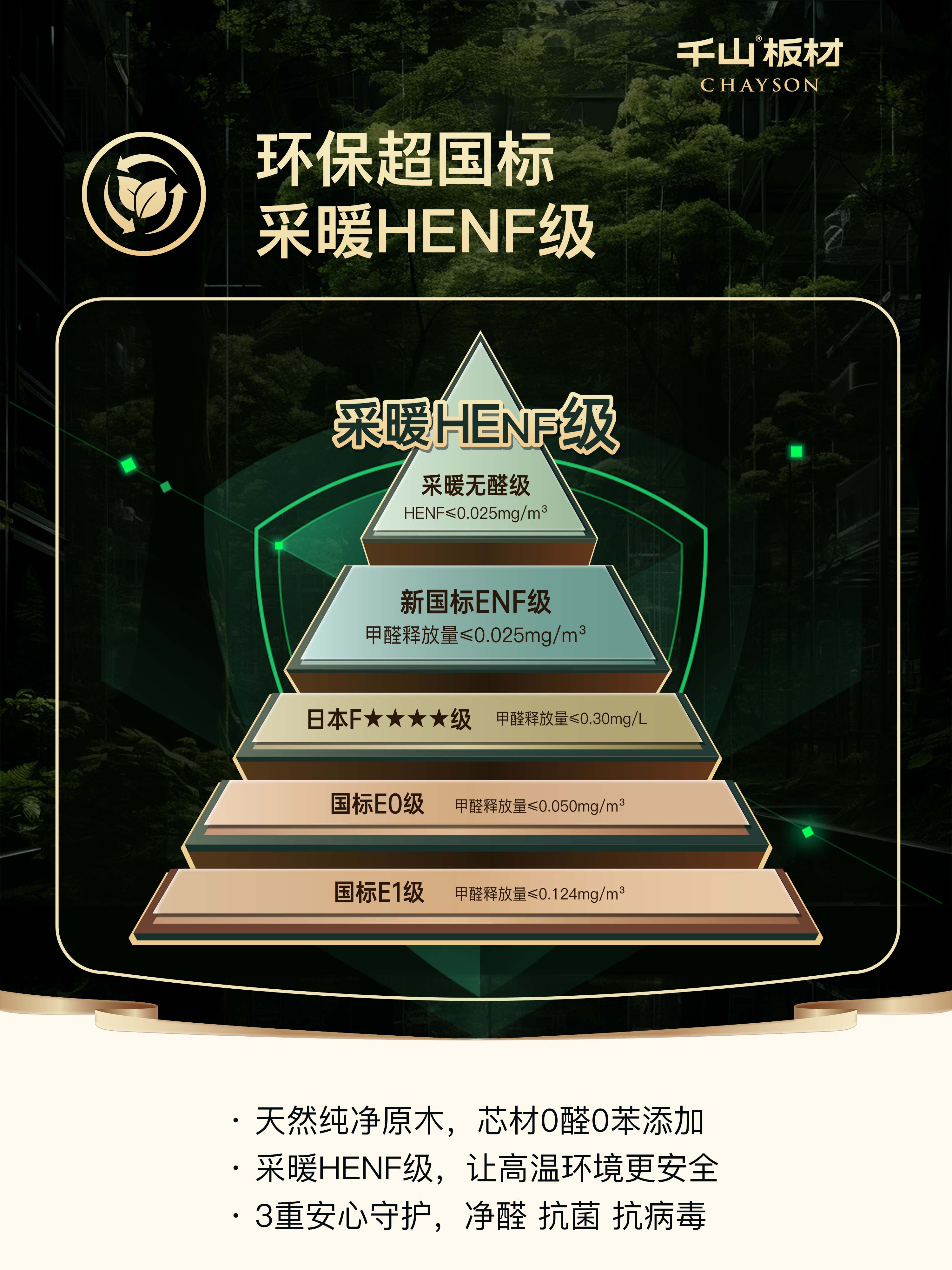 目前千山板材五大核心品類:千山全能板(實木大刨片)、千山實木小刨片、千山多層板、千山原木板(俄羅斯樺木、新西蘭松木、泰國橡膠木)、千山生態板(香杉木、楊木),環保均達到采暖HENF級,遠超國標要求。