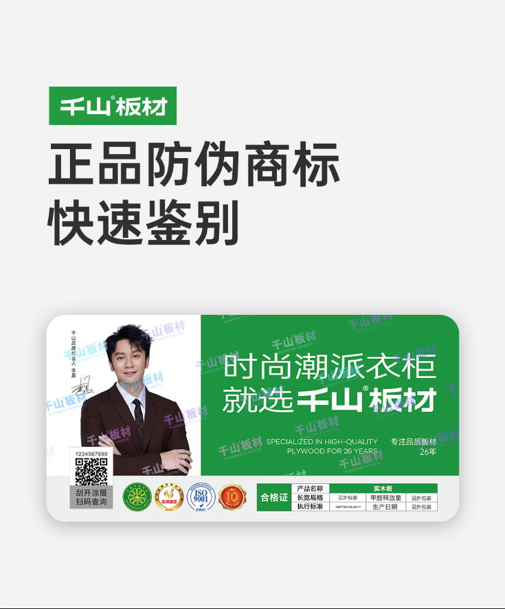 嚴控質量標準,捍衛消費者權益,千山板材一直致力于為消費者提供優質的產品和服務。千山板材通過不斷優化精進防偽設計,來抵制假冒偽劣產品。今天,千山板材防偽攻略特別上線,為您的安心保駕護航!