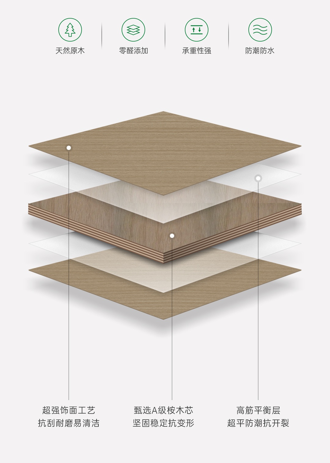 超強飾面采用德國哈特曼油墨印刷,紋理更清晰,色澤持久抗褪色,板材表面更加耐磨抗劃,經久耐用。阻燃家具板花色涵蓋優品系列、木紋系列、同步系列、純色系列,高顏美學融入產品,打造時尚家居。阻燃家具板的優質基材搭配無醛環保工藝,使其甲醛釋放量達國標最高環保等級ENF級。環保性和阻燃性的雙重保障,為我們創造安心健康的室內環境。