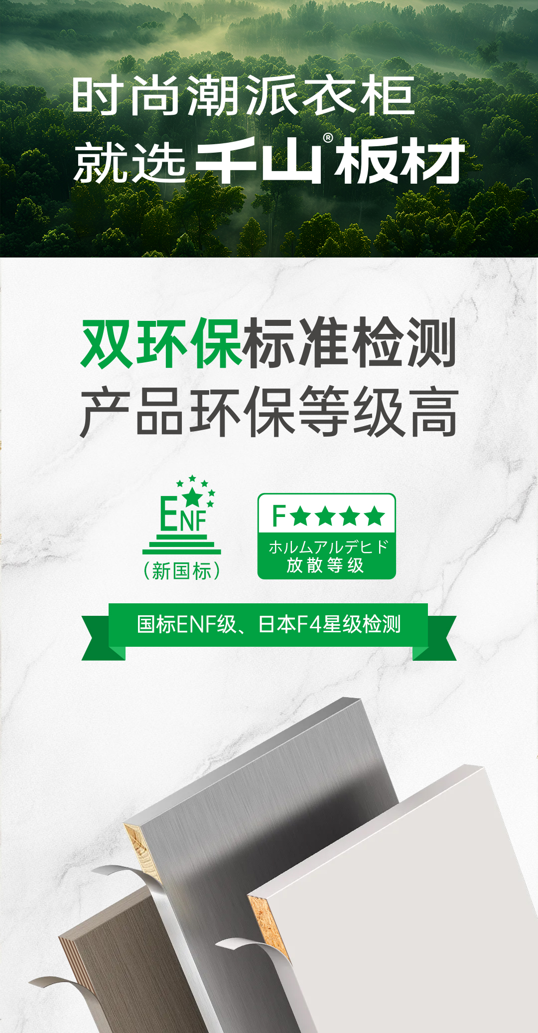 一直以來,健康、綠色、環(huán)保始終是家庭裝修的首要需求。千山作為綠色人居倡導(dǎo)者,以“推進(jìn)時(shí)尚、健康、潮流家居板材、裝飾材料的普及應(yīng)用為己任”,再次刷新環(huán)保新高度,順利通過ENF級(jí)和F☆☆☆☆雙環(huán)保檢測(cè),為消費(fèi)者的健康品質(zhì)生活再上一重綠色防線。“環(huán)保”來真的!ENF和F4星雙檢測(cè)甲醛釋放限量是板材的一項(xiàng)重要環(huán)保性能指